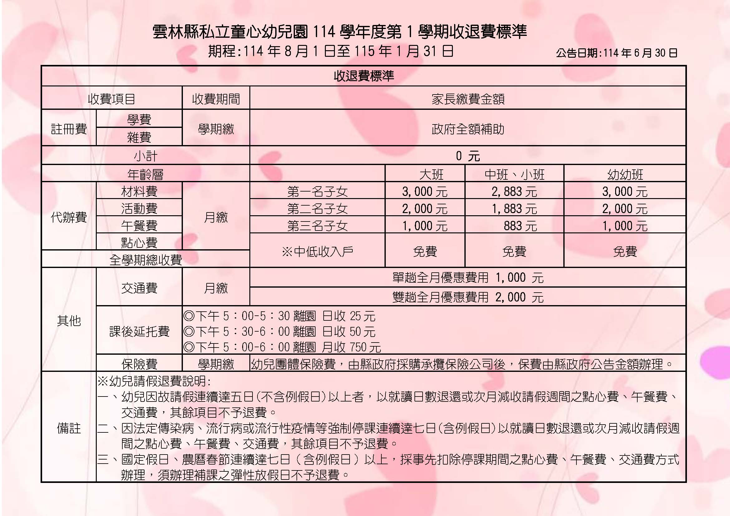 童心收退費標準